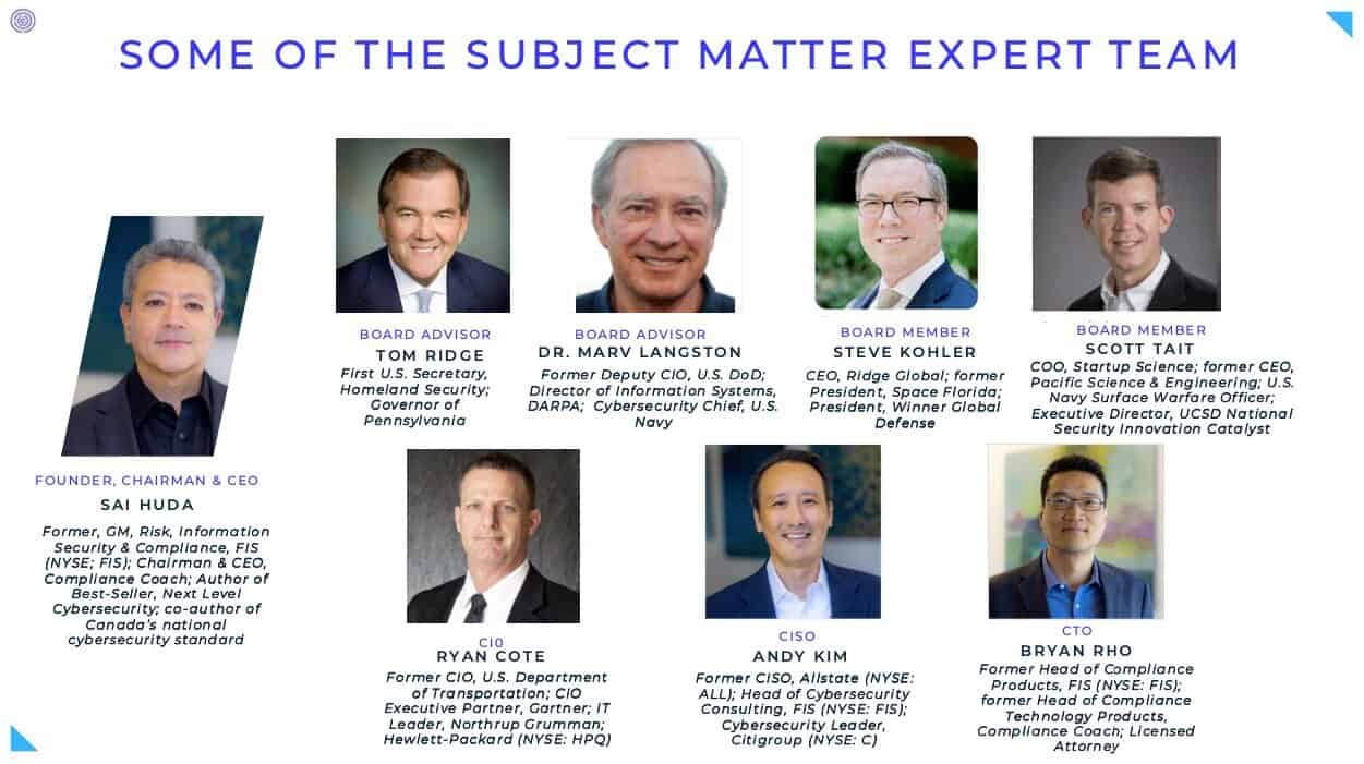 Founder, Chairman, and CEO Sai Huda previously led FIS’s risk, information security, and compliance business and co-authored Canada’s national cybersecurity standard. He’s also the author of Next Level Cybersecurity — a widely respected industry guidebook.