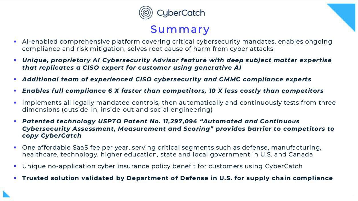 With regulators turning up the heat, CyberCatch Holdings, Inc. (TSXV: CYBE) (OTCQB: CYBHF) offers one of the only AI-powered solutions built to keep small businesses contract-ready and compliant.