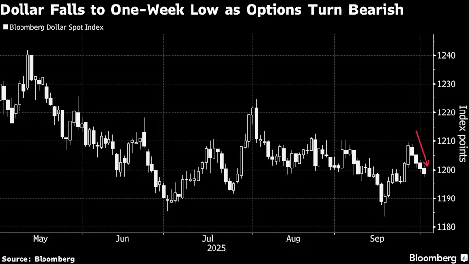 History shows shutdowns typically weigh on the greenback, a pattern echoed in options markets. Risk reversals — which measure the gap in demand between bullish and bearish trades — are signaling further downside risks over the next month.