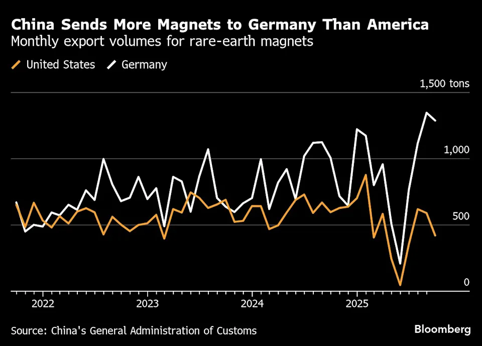 Eschen’s warning comes as Germany — by far Europe’s biggest customer for Chinese magnets — tries to push Beijing for “reliable access” to critical raw materials. Finance Minister Lars Klingbeil said he had received assurances during a visit this week that European concerns about export restrictions “will be taken seriously.”