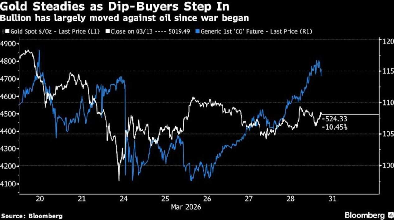 Bullion rose as much as 1.3% to trade above $4,500 an ounce, showing resilience despite a continued rise in oil prices and downturn in equities. That’s an indication that investors stepped in to take advantage of prices that have been dragged down by the war over the past month as inflation worries rise and prospects for interest-rate cuts fade.