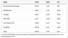 The lackluster trading was likely the result of a shortened trading week and investors anticipating the release of companies’ second-quarter earnings results. Growth stocks modestly outperformed value stocks. Tesla provided some buying interest after it reported better-than-expected sales. The stock weighs heavily in the Nasdaq Composite and growth indexes, thus providing a boost to these indicators. A smaller tech stock, electric vehicle manufacturer Rivian, also contributed to the buying activity in this sector. On the other hand, Astra Zeneca’s new lung cancer drug suffered disappointing trial results and caused the stock to weigh down the healthcare sector.